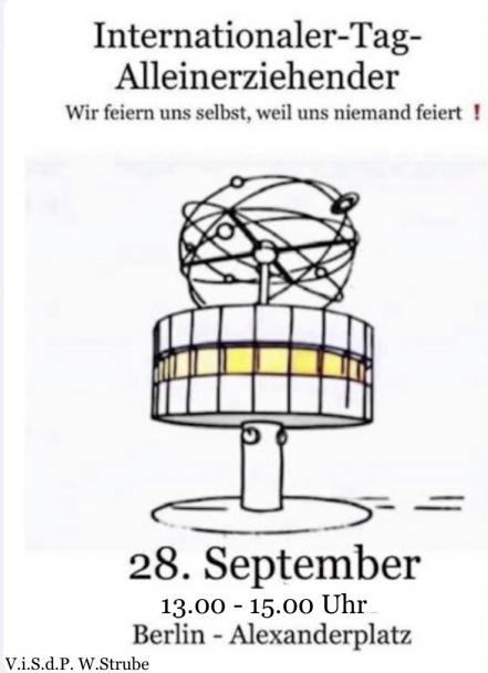 2809! 28. September: Deutschlands Anschluss für den internationalen Tag der Alleinerziehenden!
